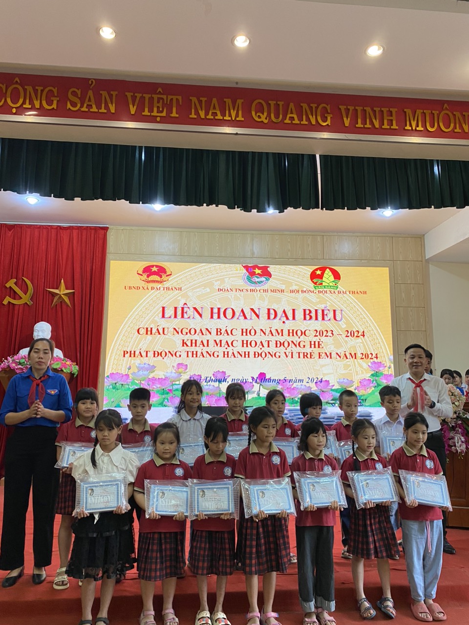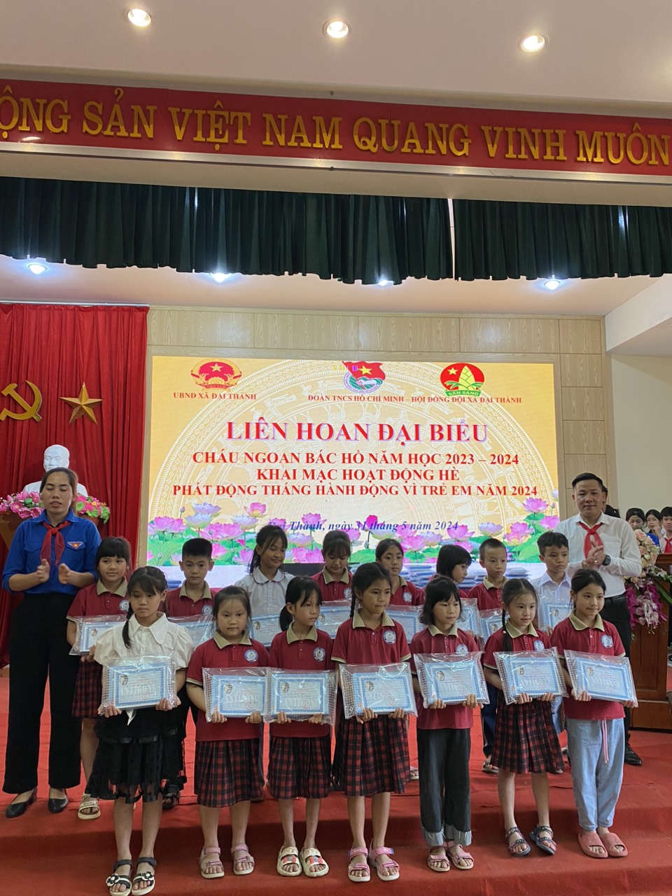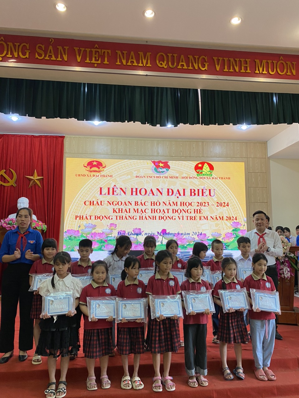 Học sinh Xuất Sắc nhận phần thưởng tại UBND xã