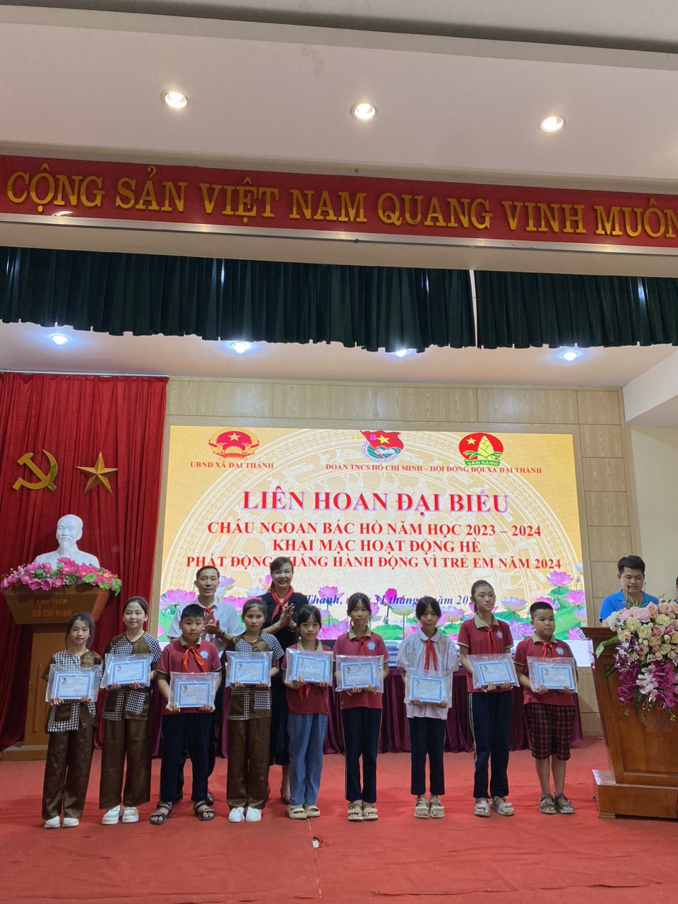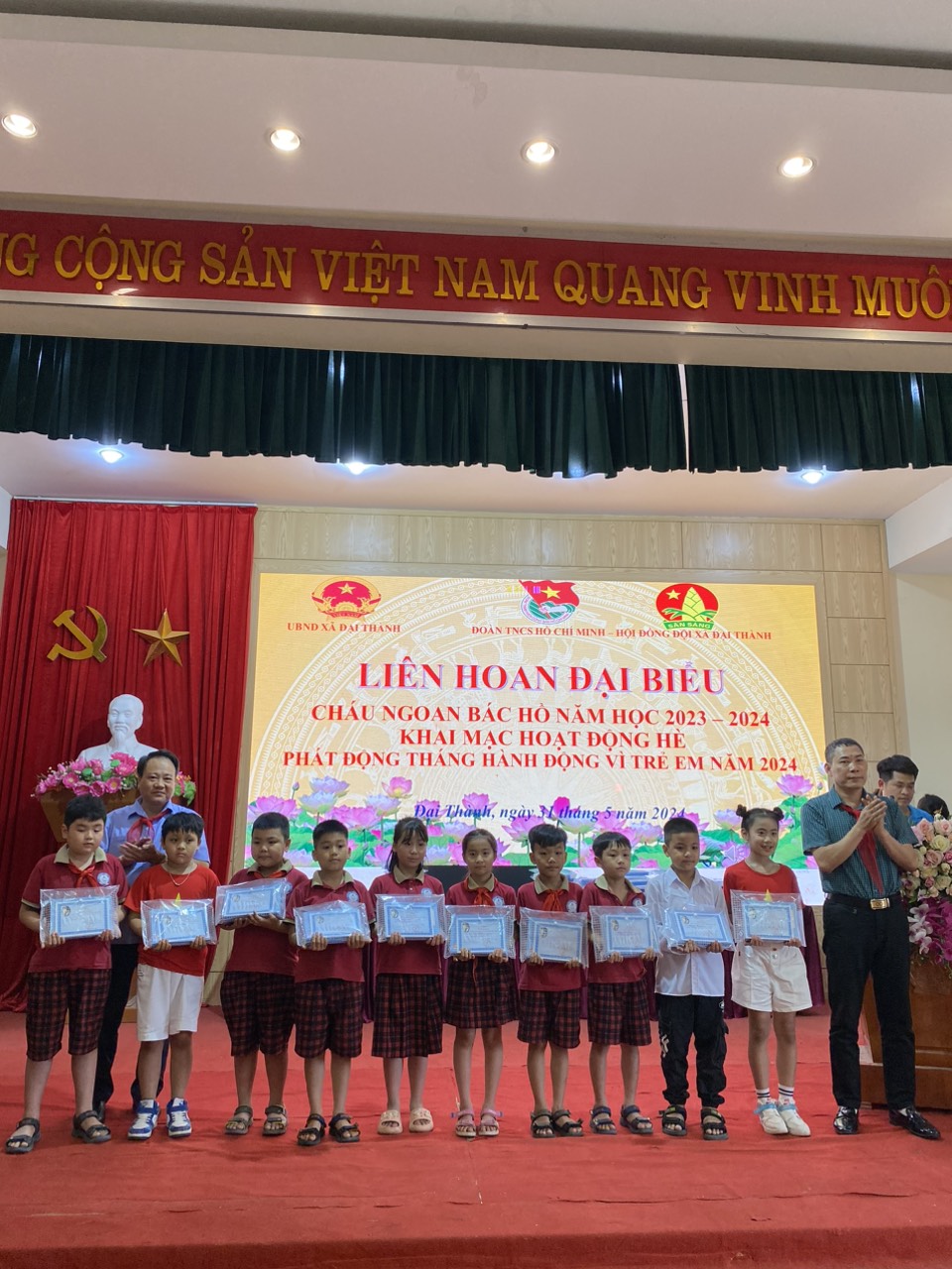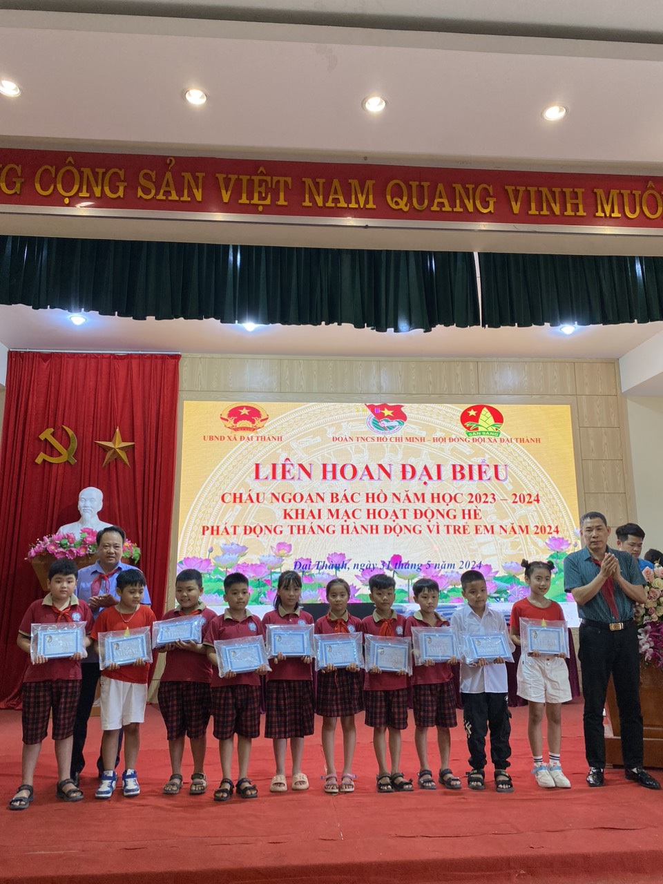 Học sinh Xuất Sắc nhận phần thưởng tại UBND xã